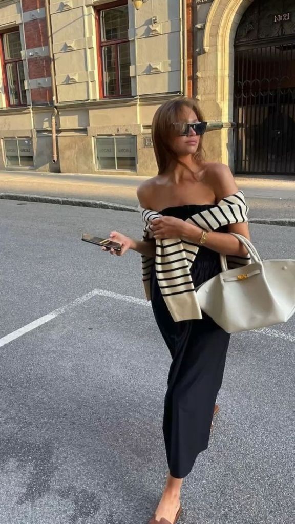 This summer, the Old Money trend made me excited to think about new fits, because this is finally something which can be sustainable, elegant, chic, yet really easy to put together. You do not have to buy anything new for your wardrobe, because the pieces that you need for these outfits are probably in your closet, already. These looks can be solved by basic, capsule pieces, like a white t-shirt, a blue shirt, satin skirts and loafers or ballett flats, which can be found in any thrift stores or in online secondhand apps. The main idea behind the looks is to look cleaned up, put together, but with a minimal effort, using just the most basic colors, like white, black, beige, blue, brown, basically and accessorizing them with different patterns like stripes or polka dots, to make them look more elevated.
