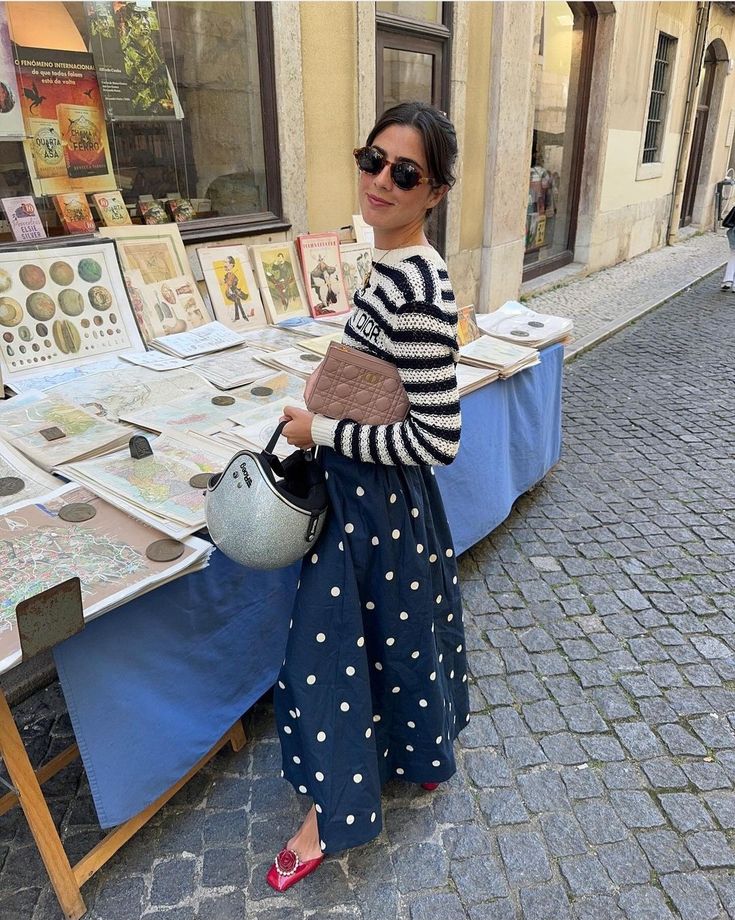 The way to unlock this skill is to mix large, bold prints with smaller, more delicate ones. For example, pair wide-striped pants with a t-shirt featuring tiny polka dots or floral details. Tiny and itemized prints can be easier to play around with, as they are not too much of a statement, so you can complement them with more structured and bold ones. My favorite pair from my wardrobe is pairing my delicate blue striped shirt with leopard print. This duo works well, as leopard print is a statement and bold pattern, yet the shirt is closer to something neutral.