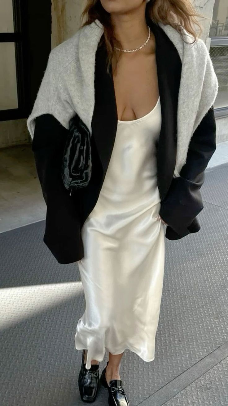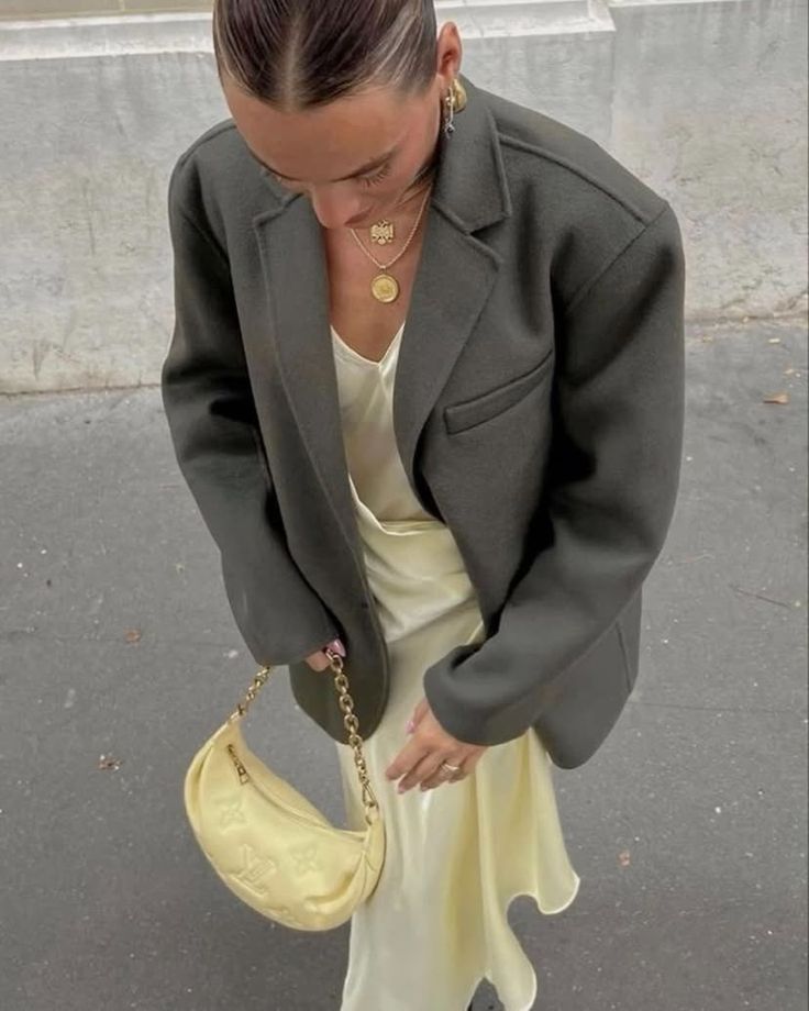A maxi szatén ruhák szinte kötelező darabok a tavaszi/ nyári időszakban. Rendkívül könnyen stylingolhatóak különböző alkalmakra és laza, nőies kisugárzást biztosítanak. Én nagyon kedvelem a színes darabokat, de a földszínekkel sem lehet mellélőni. Ezeket a legegyszerűbben feldobhatod egy blézerrel és egy loaferrel, ami igazán hétköznapivá teheti, az effortless vibe pedig adott.