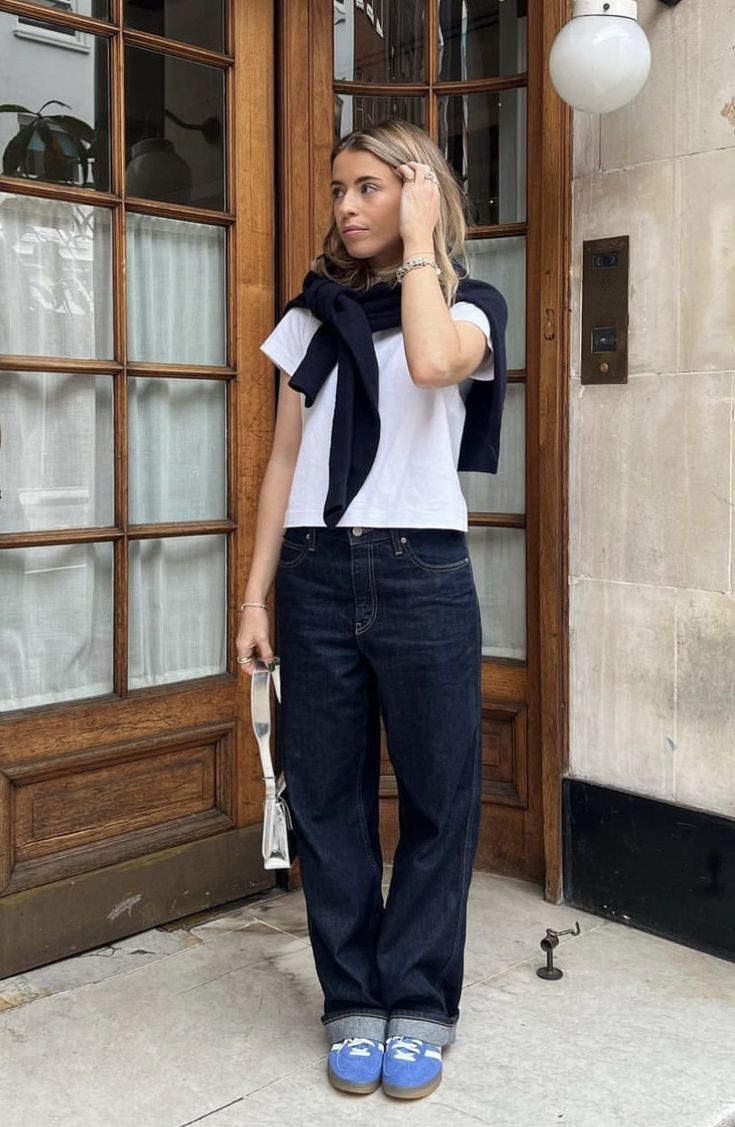 Ultimate uniform. Az igazi tavaszi könnyedséget és lazaságot nem is tudja jobban átadni egy outfit. A sötét farmer biztosítja a kontrasztot, főleg, ha egy fehér oversized pólóval kombináljuk. Ehhez zseniálisan passzol egy színes sneaker, a pop of color eléréséhez és igazán egyszerűen játszhatunk a kiegészítőkkel is. Egy színes lencsés napszemüveg, vagy egy nagyobb lánc, sokkal összhangosabbá és vagányabbá teszi a kinézetet. Millió módja van a stylingnak ezzel az outfittel, hogy mindenki magáénak érezhesse, de az effortless, chic vibe továbbra is megmaradjon.