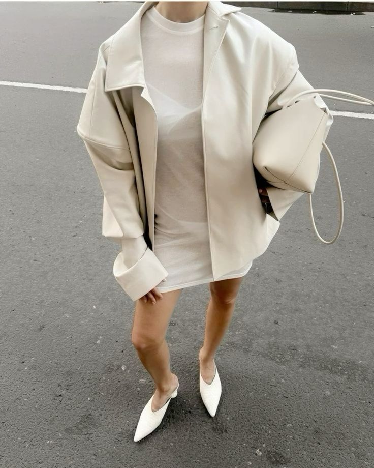 A monokróm szettek szintén időtlen összeállítások, amelyek gondolkodás nélküli szuper megoldások. Ez igazán átadja, azt az effortless vibe-ot amit szeretnénk elérni ezekkel a tavaszi outfitekkel. A monokróm öltözködés nemcsak trendi, de optikailag is megnyújtja az alakot.